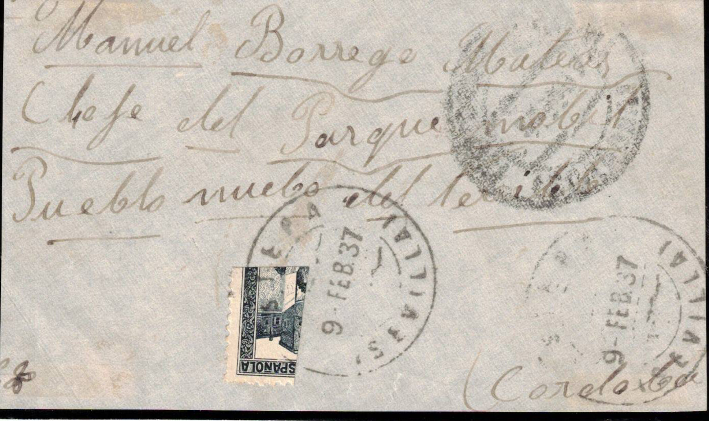 Continuo con otra con cuño del Ejercito del Este grupo de obuses desde Granadilla (Cáceres) a la Cruz Roja