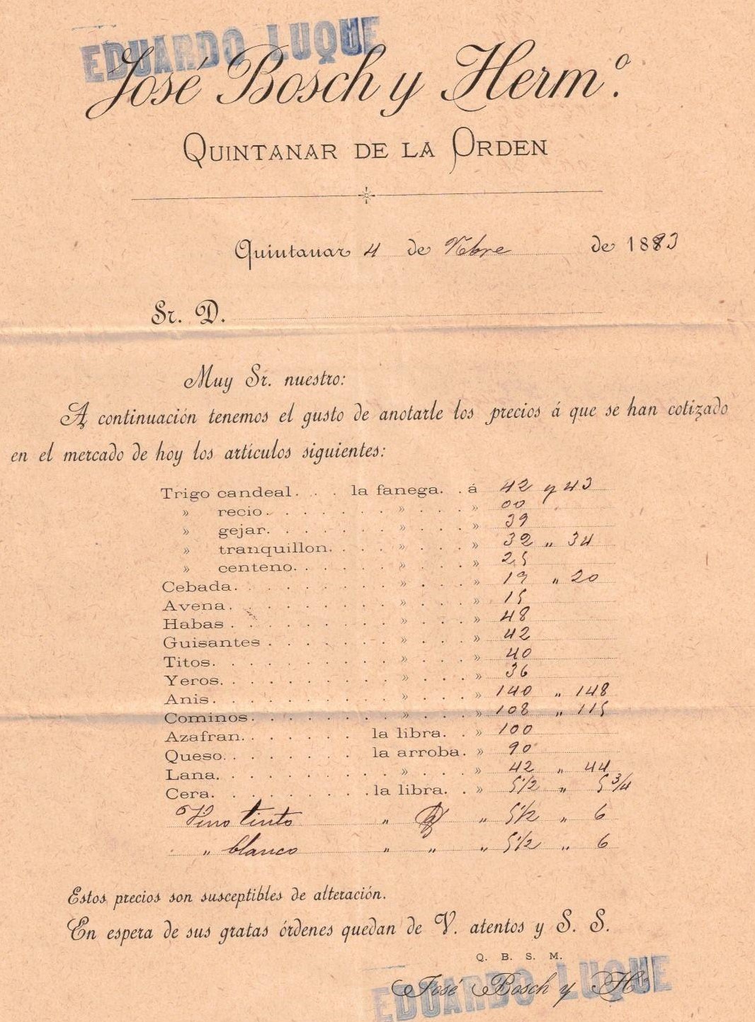 Cuartillo anulado con el fechador de Quintanar de ka Orden (Toledo)