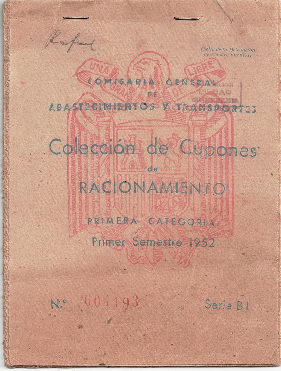Cartilla de racionamiento año 1952