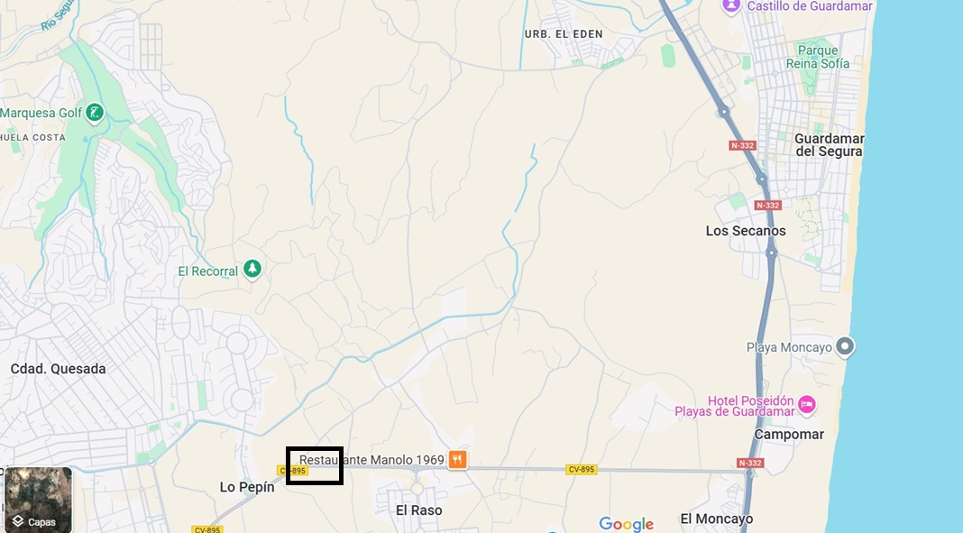 En el BOC de 15 de marzo de 1945 se notifica la creación de un Peatón de Guardamar del Segura a "Comercio de Aldeguer". Parece que se sitúa en las inmediaciones de Campo de Guardamar, a orillas de la Laguna Salada de la Mata, pero no consigo afinar la localización...