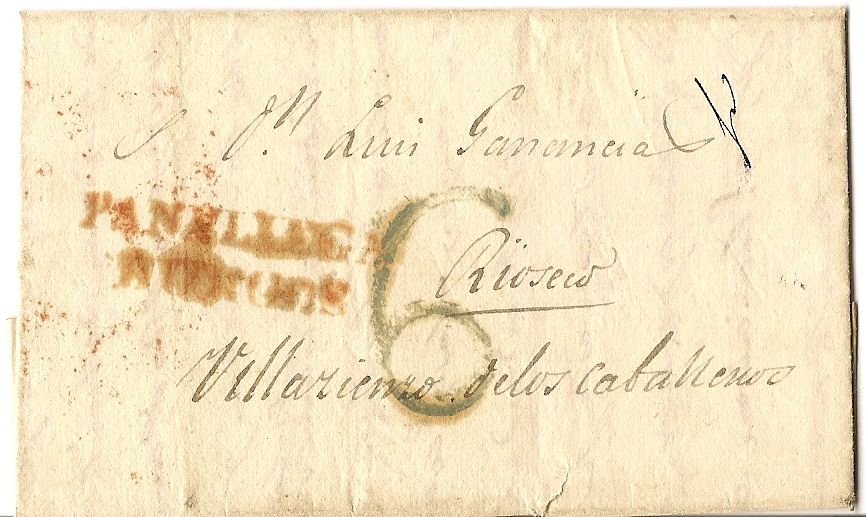 Tenemos la siguiente carta fechada en Villaverde Mogina el 10 de septiembre de 1843, aunque el fechador parece del día 9, que adelanta el uso de la marca en rojo en tres años.