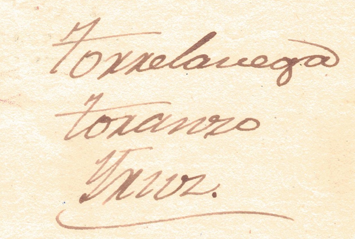Os muestro el destino en una carta donde puedo identificar TORRELAVEGA y TORANZO en Cantabria pero no consigo leer la última linea, por si alguien es capaz.