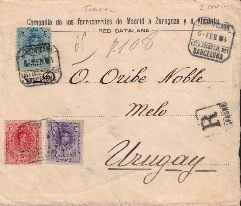 En el frente un paquetes postales de Elche, al dorso certificado de Onteniente y para redondear (hexagonar)