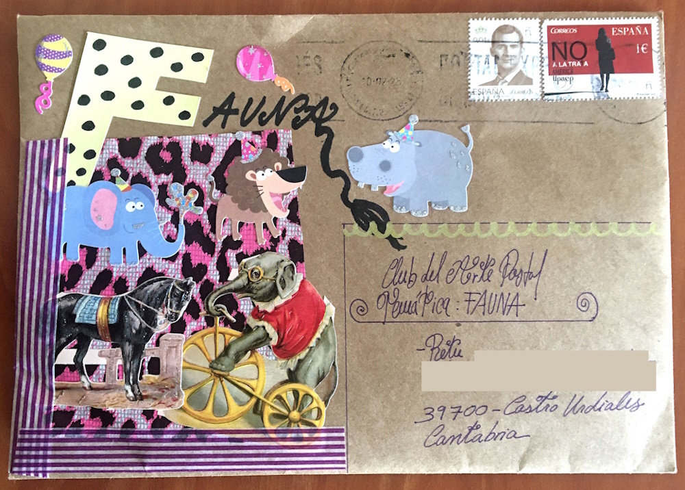 La postal llegó rota por el mismo sitio que el sobre, una pena, pero con el permiso de Raúl la intervendré y formará parte de un fanzine que estoy haciendo.