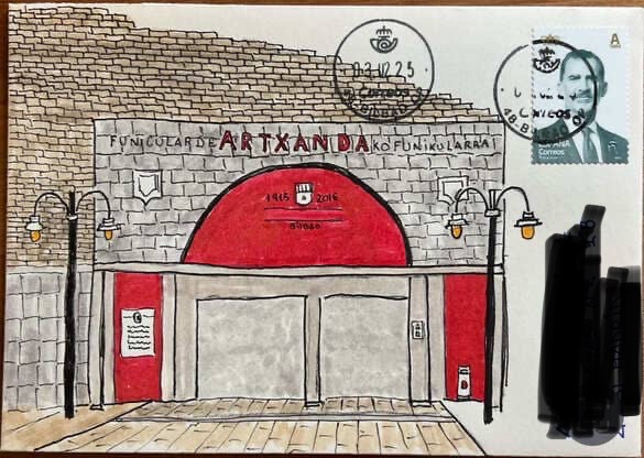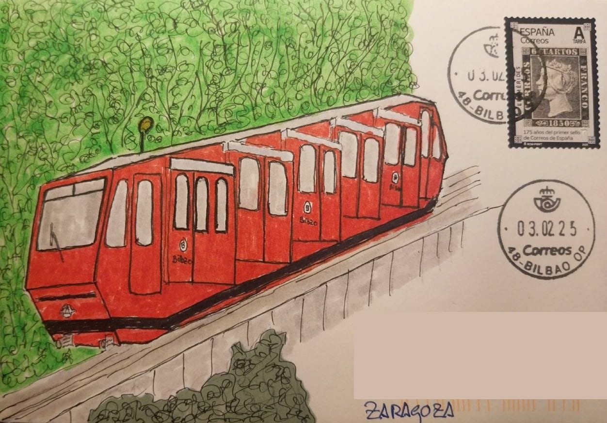 Un increíble dibujo a todo color del funicular de Artxanda, hecho a mano por Carlos. Y no es para menos, ya que el motivo es aún más especial. Como cuenta Carlos, al que envío ánimos, fue en la pista de patinaje de este lugar donde se conocieron sus padres.