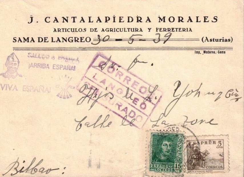 Y termino con carta a Portugal desde Almería con marca Franco y rueda carreta.