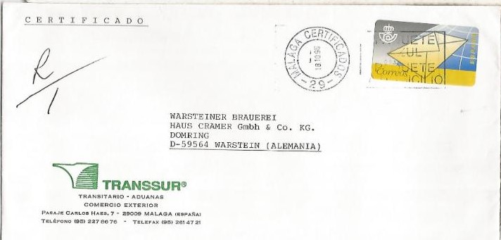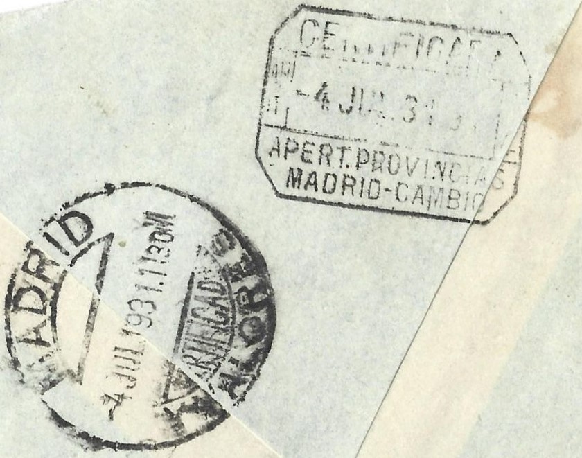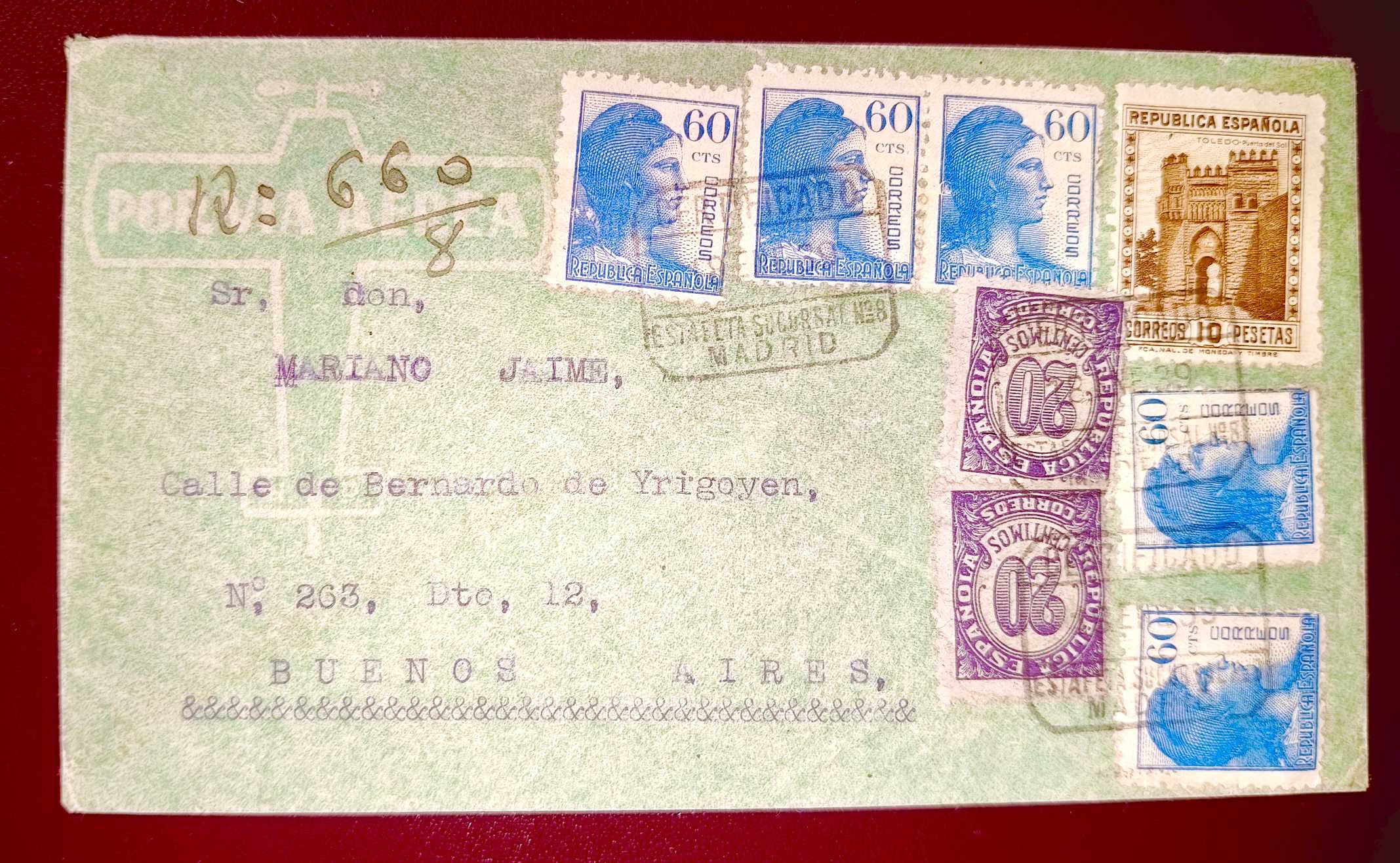 Me he topado esta mañana con esta cartita de 1949, de Lleida a Los Angeles. Me sorprendio el matasellos de certificado, en un formato bastante mas pequeño que los matasellos corrientes de la epoca.
