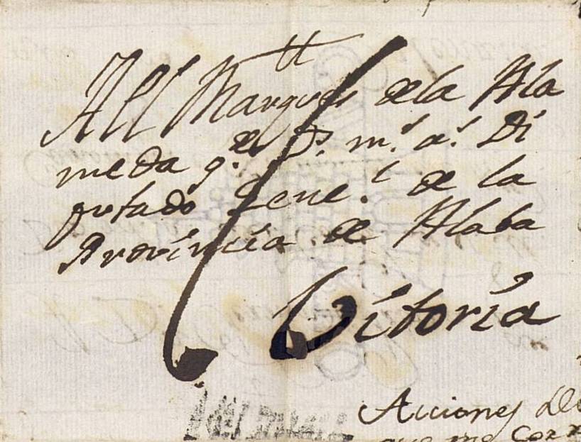 Por las anotaciones diríamos que es anterior a 1723 y que posiblemente fuera una carta dirigida por Pedro de Vargas a Francisco Antonio de la Palma, en cuyo caso la marca debería ser de Toledo.