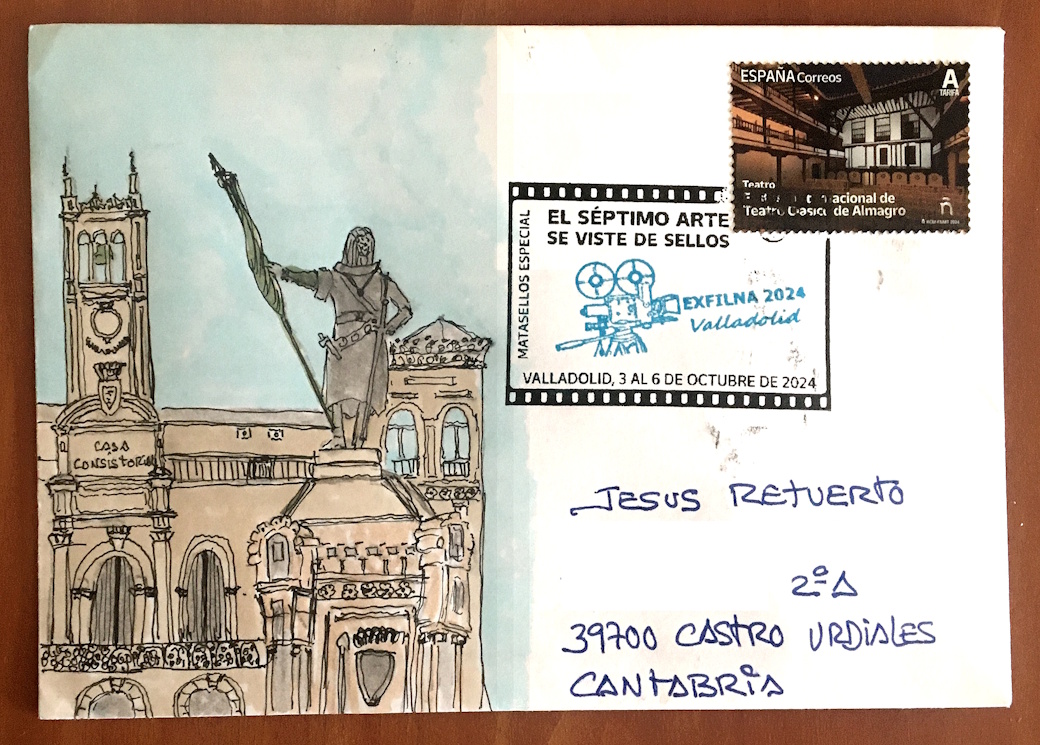 Pero bueno, no hay mal que por bien no venga y me alegro mucho de haberla recibido al fin :D. Además, lleva el precioso matasellos de la Exfilna/SEMINCI, que me encantaba tener, pues en un tiempo que colaboraba con una revista de cine haciendo crítica de cine (hace ya más de 30 años) asistí acreditado varios años a la SEMINCI de Valladolid para cubrir el Festival para la revista y guardo muy buenos recuerdos de un Festival que es fantástico. La carta, como siempre en todas las de Charlie, preciosa. :)