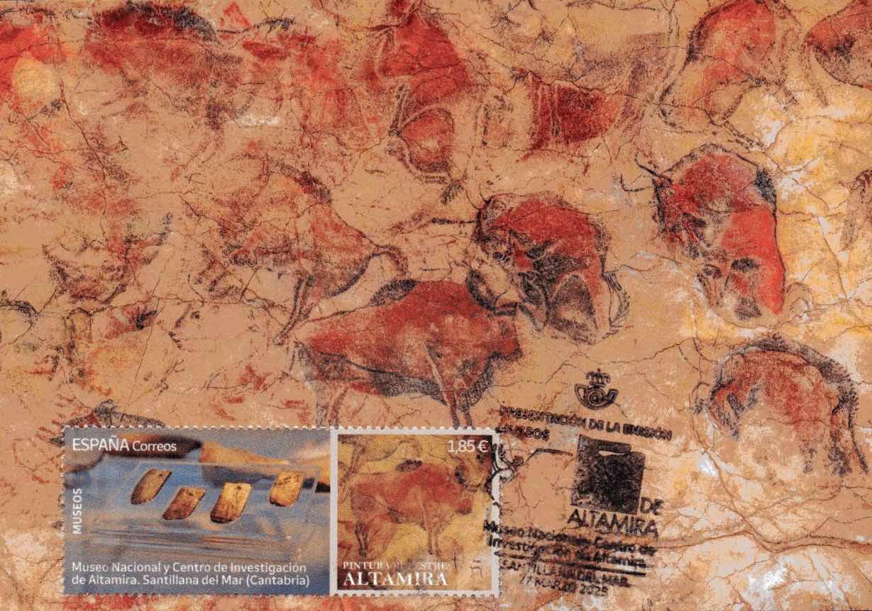 El sello y la postal son los dos bisontes de la cueva de Altamira