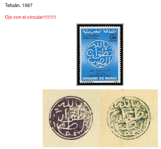 Ese sello azul, que se supone es contemporáneo, habrá que verlo pero no parece Tetuán. Aunque al ser editado quién sabe.