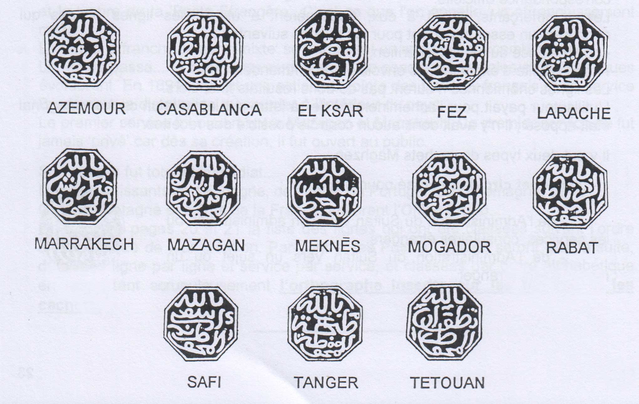 Aquí se pueden ver los Cachets Maghzen que existen y la población a la que representa cada uno