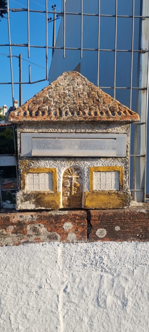 Buzón situado en Chouto Portugal, un rincón del Ribatejo donde el tiempo camina despacio y el aire huele a pan recién hecho, este buzón vigila la calle como una vieja casita de piedra. Su tejado, curtido por el sol y las lluvias, guarda cartas que cruzaron veredas y campos, llevando noticias de lejos y secretos de cerca.