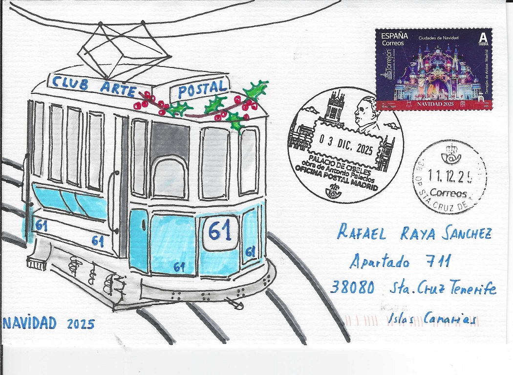 Me alegro que te guste, amigo Rafael. Y gracias por tus palabras.CENTAURO escribió: 11 Dic 2025, 18:02 Recibida con fecha de hoy perfectamente, preciosa carta del Amigo JOSE LUIS, decorada con un bonito TRANVIA de los que a mi me gustan mucho, conteniendo su Felicitación Navideña. (Como dice la compañera ASUNCION (IRIS), como envidio sanamente a los que hacen esos preciosos sobres decorados.