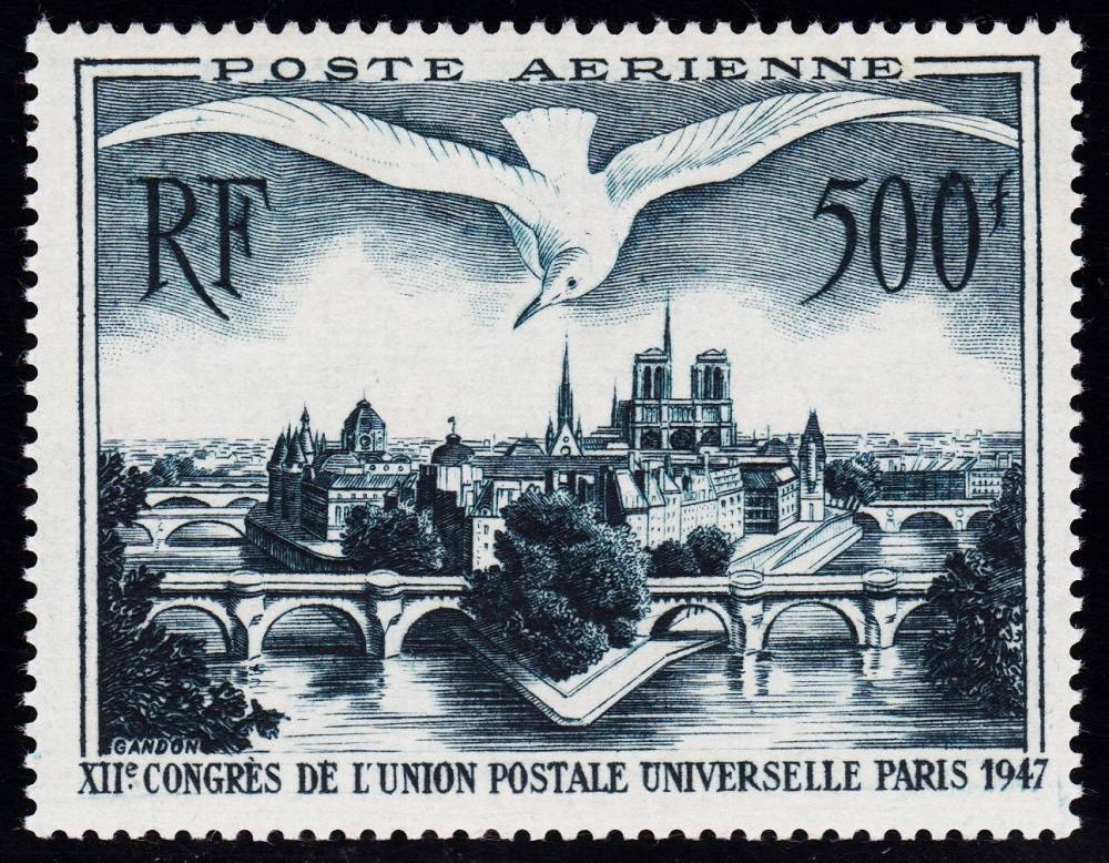 Vista de París, Francia, 1947. Diseñado y grabado por Pierre Gandon.