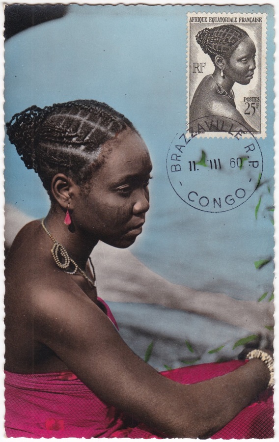 Mujer bacongo, diseñada y grabada por Pierre Gandon y emitida para su uso en el África Ecuatorial Francesa en 1947.