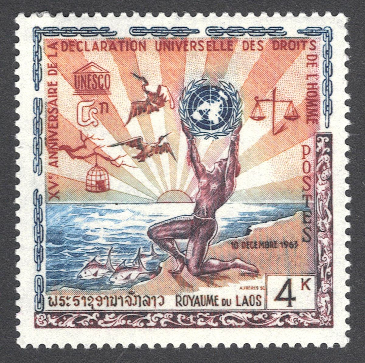 Empecemos; Sello de 1963, dedicado a los Derechos Humanos, más en concreto, al XV aniversario de la Declaración Universal de los Derechos Humanos del Hombre.