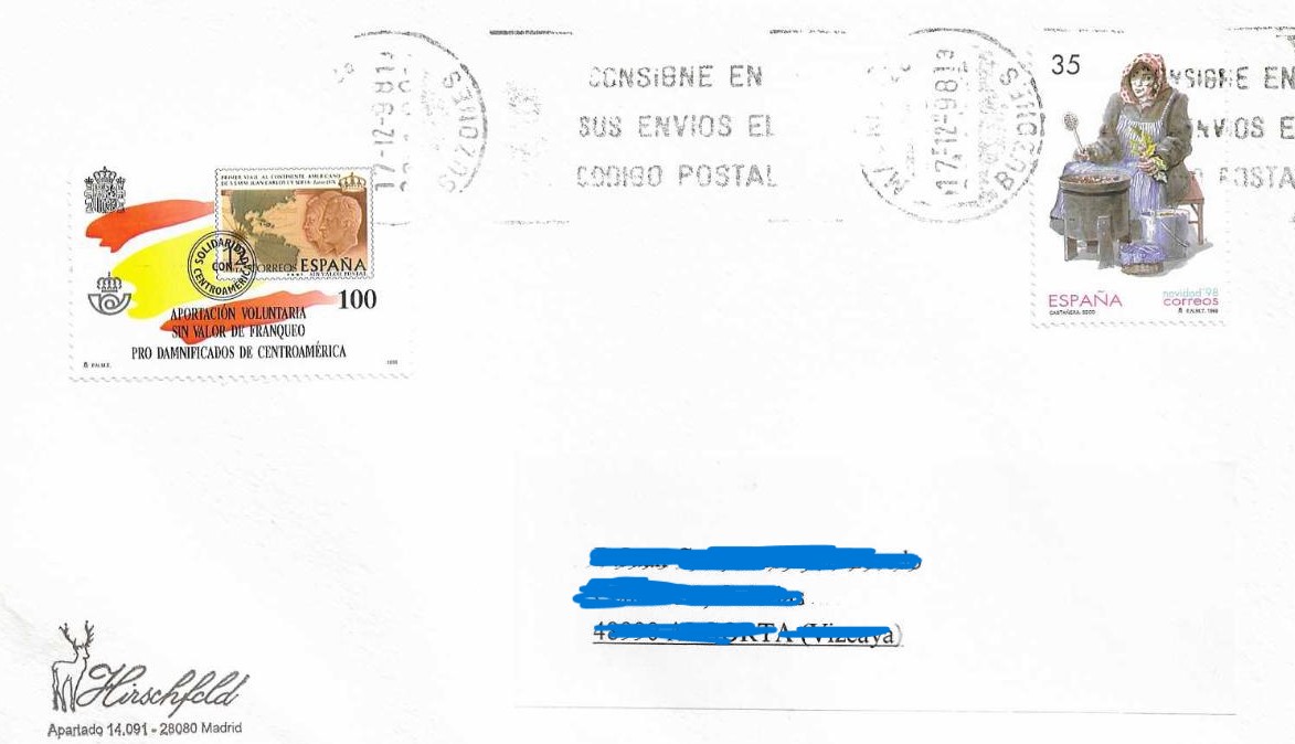 - ¿Tenéis alguna carta circulada de ese año 1998 o siguientes en la que figure tal viñeta? Sería bonito verlas.