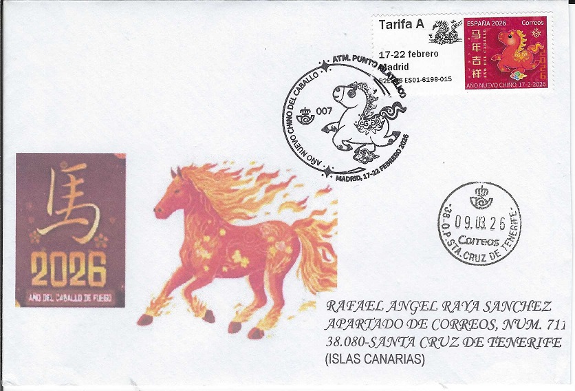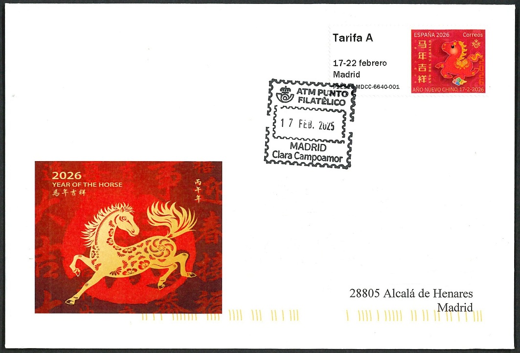 . Muestro un ATM del Año Nuevo Chino, circulado desde Madrid a Alcalá de Henares. Matricula MDCC del SF (sin dibujito añadadido), Matasello del día 17 de febrero... pero hay un error que descubrí en casa. ¿Cuál?