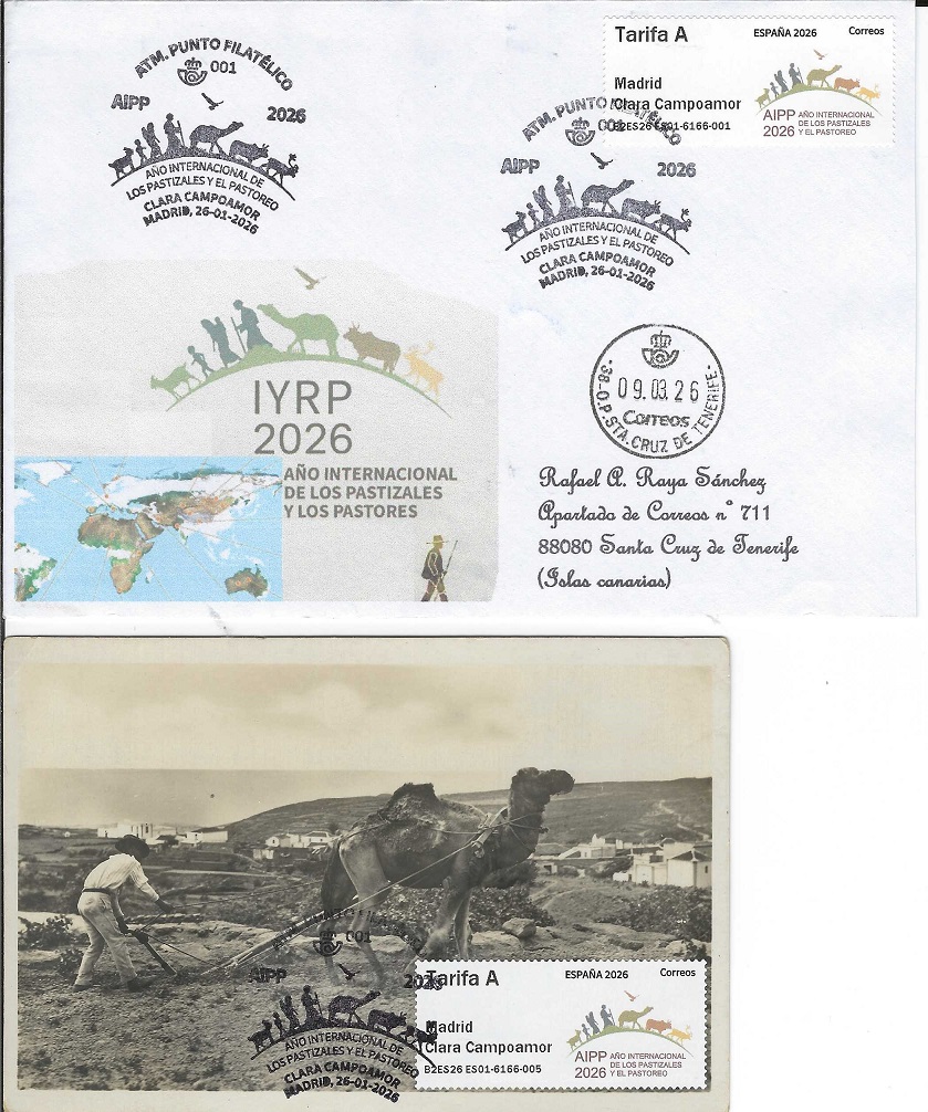 Recibidos con fecha de hoy perfectamente, sendos sobres del Amigo Luis Miguel (L&M), de las ATM del Año Chino del "Caballo" y del Año Internacional de los Pastizales y los Pastores, incluyendo preciosa tarjeta postal antigua "Maxima".