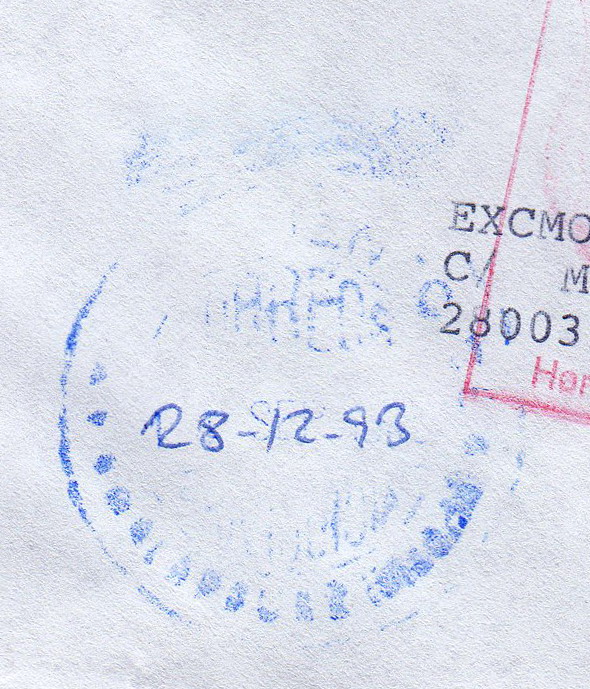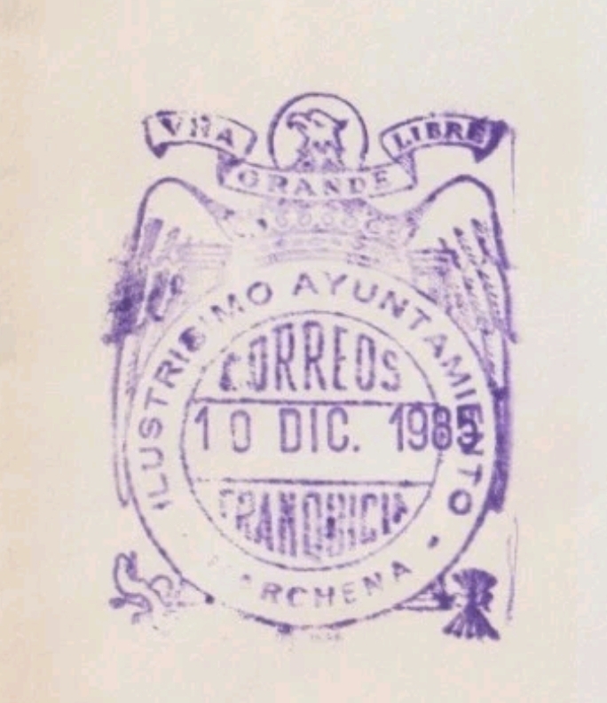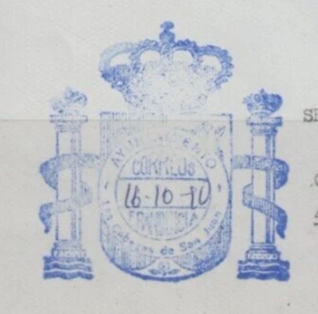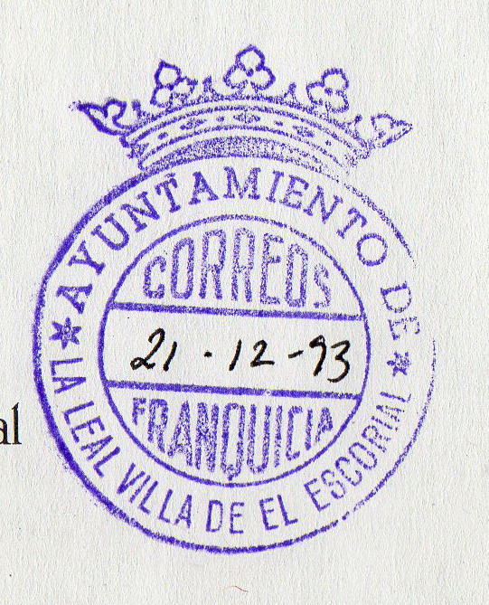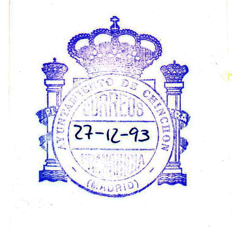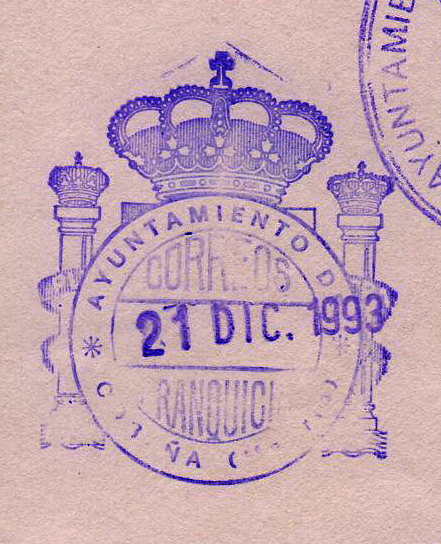Ayuntamiento de Villaverde del Río. Diciembre de 1990 (por matasellos de la carta). Primer registro.