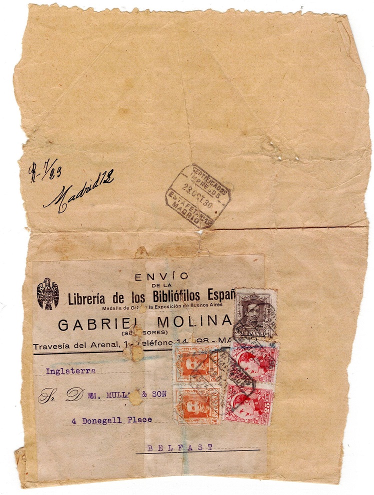 Impresos certificados, reespedida, a S. India en 1935, sobre artesanal fabricando con un cartoncillo de fotografía.