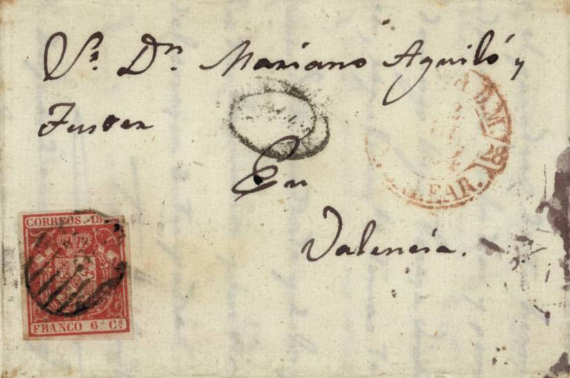 En negro es inédita. Tenemos tres cartas de Palma de Mallorca a Valencia. La primera llega el 10 de junio de 1854. Las otras dos son de julio, aunque no se aprecia correctamente el día del fechador.