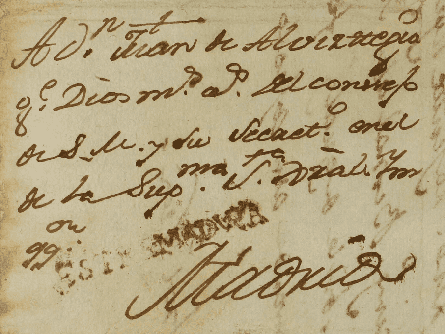 Por cierto, la carta es preciosa, no lleva porte porque las cartas dirigidas por correo al secretario de la Suprema y General Inquisición gozaban de derecho de franquicia.