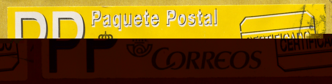 Para mayor abundamiento, reproduzco esta etiqueta junto con la etiqueta de certificado y la inscripción manual de Paquete Postal (P.P.).