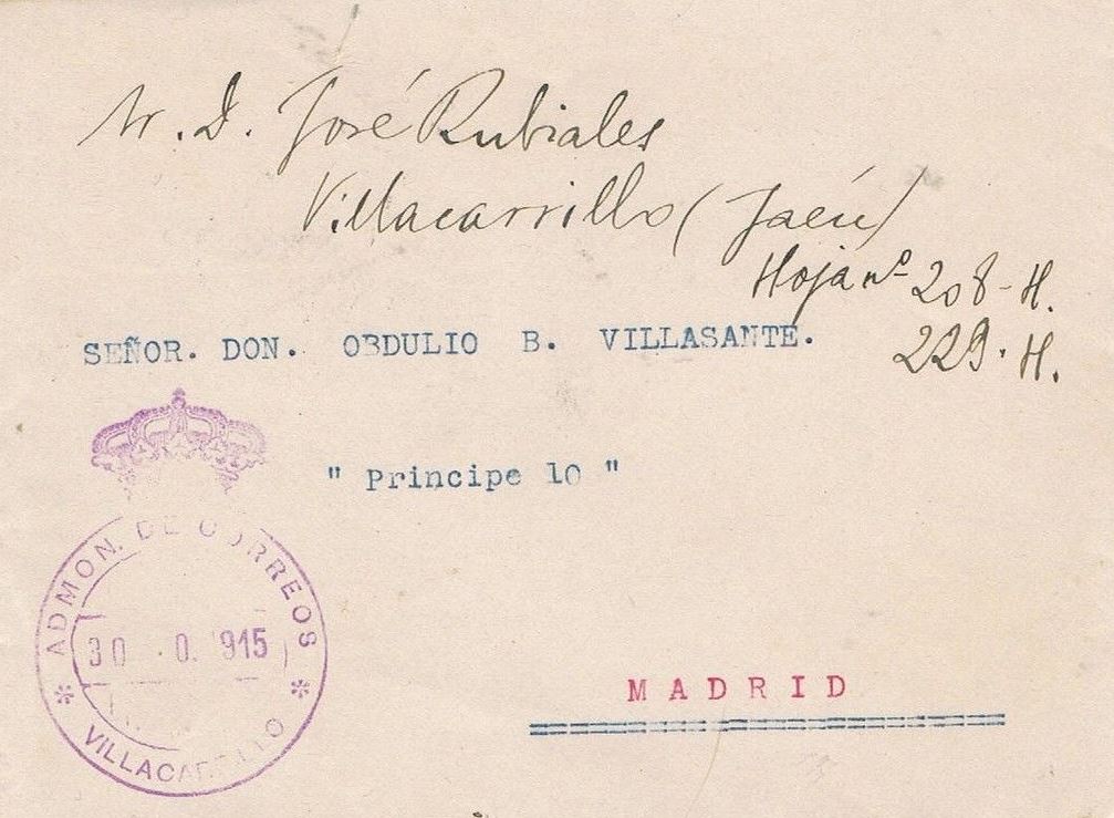 ADMINISTRACIÓN DE CORREOS DE VILLACARRILLO 1915 (Tomado de alguna subasta)
