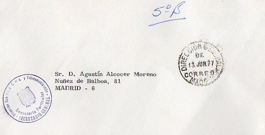 [quote="1964"]SERVICIO DE CORREOS. El remitente es el Secretario General de Correos y Telecomunicaciones, que es el que pone el tampón. Muestro sobre y sello de armas. SECRETARIADO GENERAL / Secretaría Particular. Creo que debe ir en este hilo.