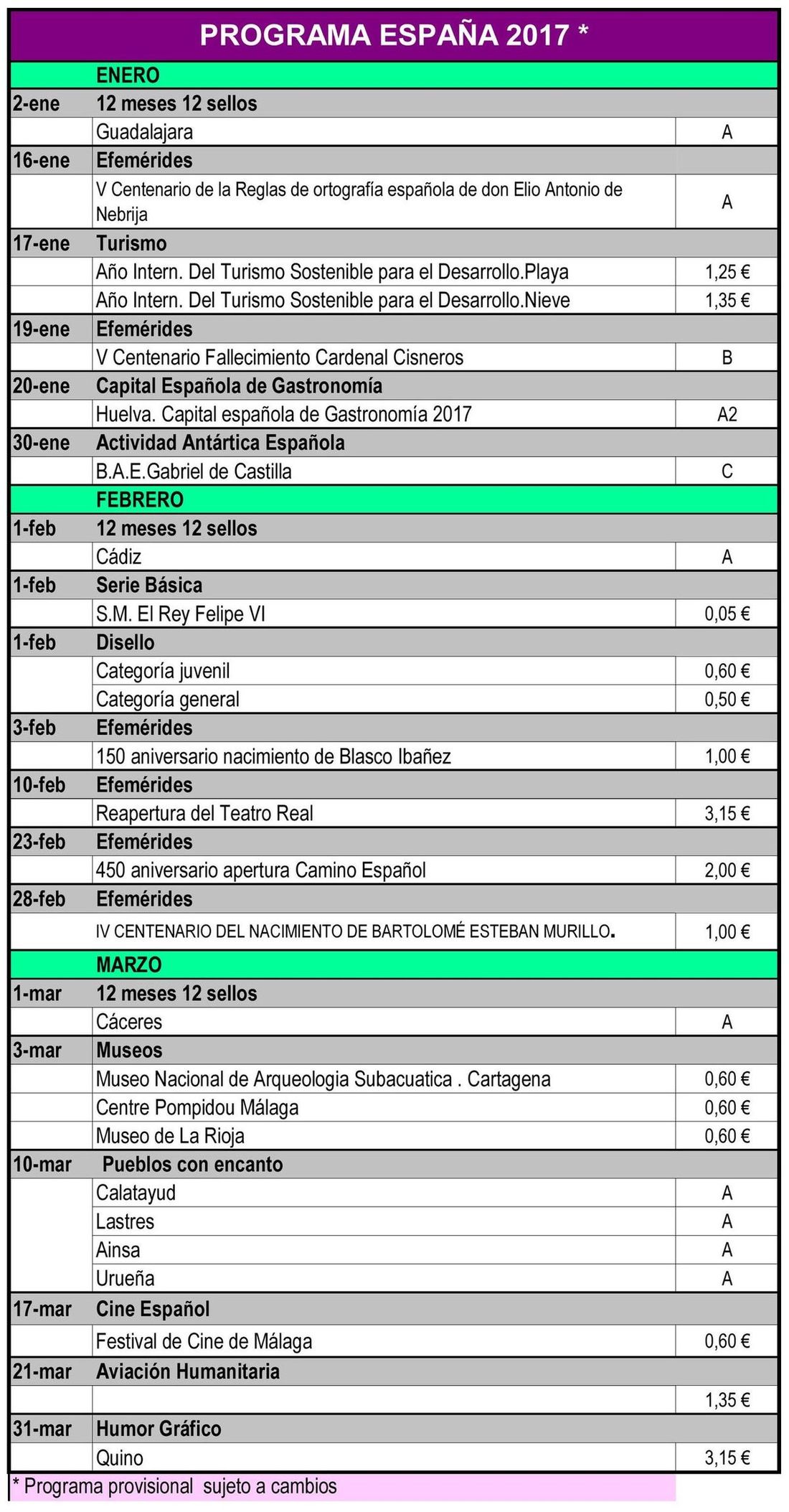 EMISIONES ESPAÑA Y ANDORRA ESPAÑOLA 2017