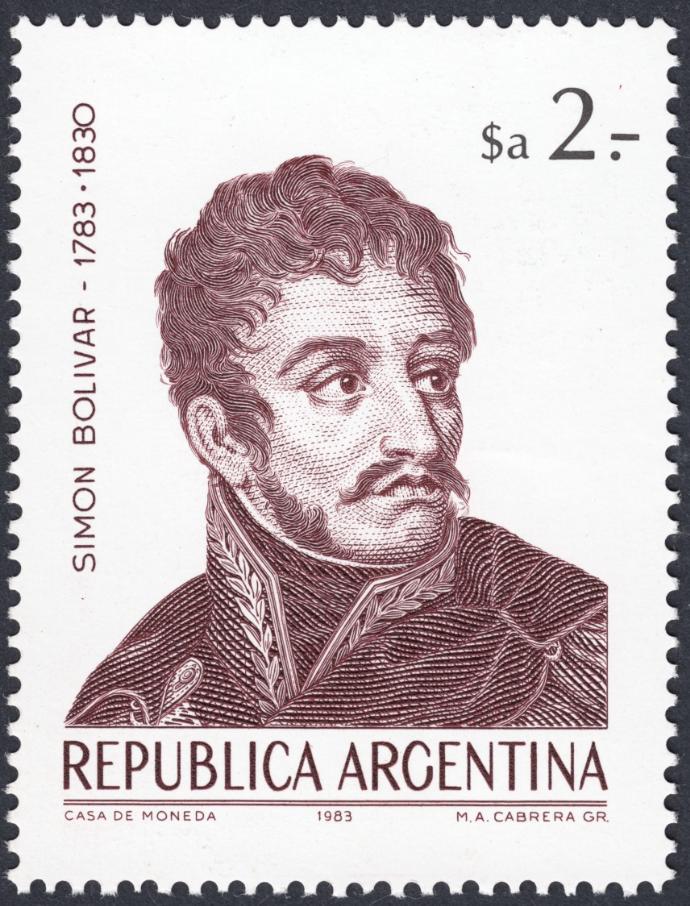 Ninguna personalidad tiene más sellos en Latinoamérica que Simón Bolívar. Argentina, 1983: