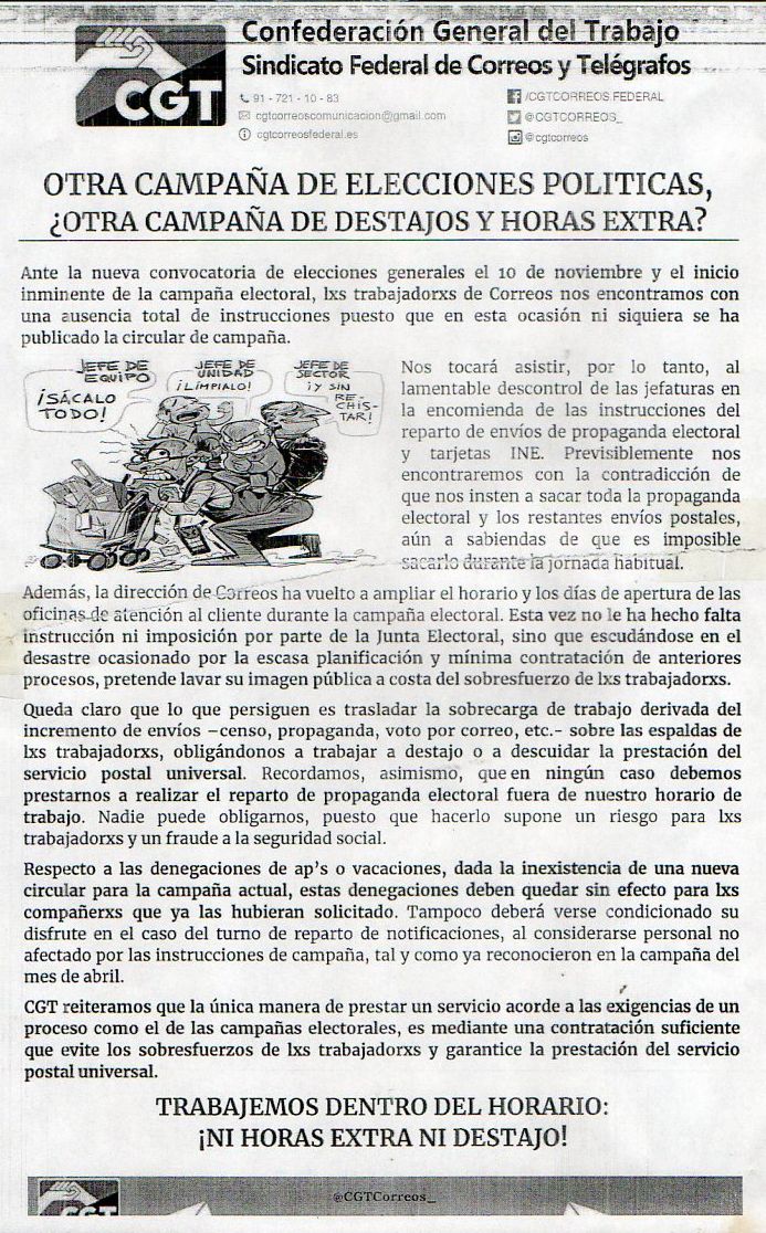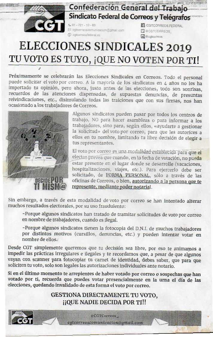 NOTA INFORMATIVA DE LA CGT