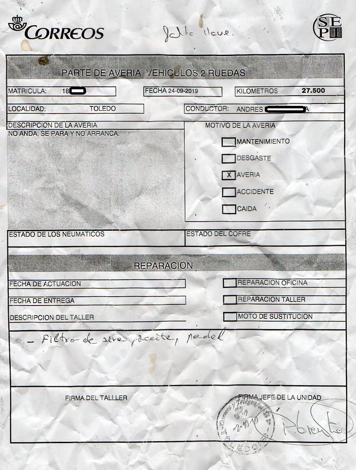 Un parte de averías de las motos del CCPT