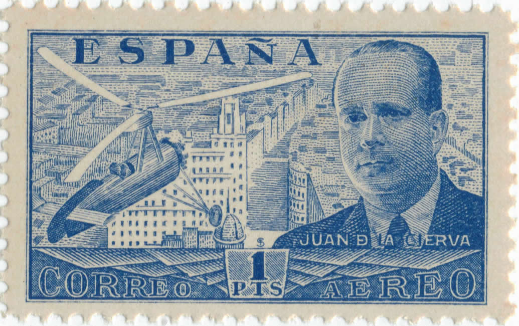 La primera de ellas es de un sello impreso en Burgos, la segunda a uno en la F.N.M.T. Cuando se comparan ambas impresiones son evidentes las diferencias. Dichas diferencias son consecuencia del diferente grado de aspereza y graneado que se daban entre una piedra litográfica y una plancha, a la vez si esta se imprimía directa o indirecta (offset). Para que se entienda; en la impresión de Burgos las líneas de los estabilizadores horizontales del autogiro (situados en la parte trasera) son muy finas, dicha finura no se podía conseguir en aquella época con la impresión en offset, así ocurrió con las impresiones de la F.N.M.T. Igual se puede decir con respecto a las palas del rotor, en los impresos en Burgos el contorno de estas está definido, cosa que no ocurrió con los impresos en la F.N.M.T. Con el semblante de Juan de la Cierva lo mismo se puede decir. Así pues te puedes devanar los sesos buscando los pormenores del porqué. Yo si los sé.