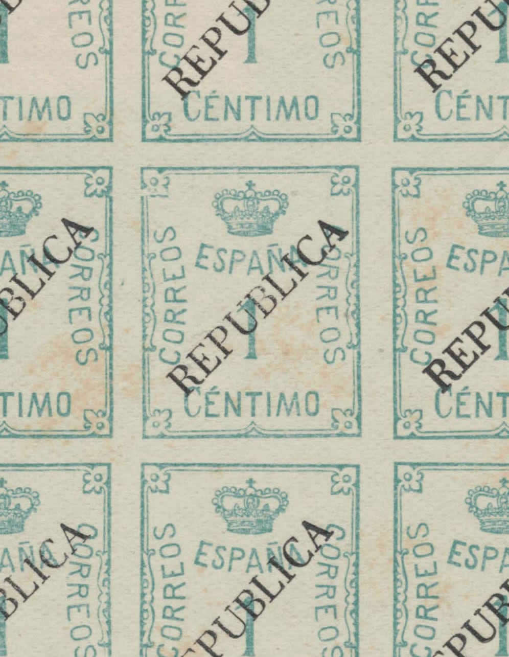 Observando la imagen del sello se comprueba la sencillez del mismo, es un grabado de líneas simples. Se observa también que no se aprecian diferencias, las líneas tienen el mismo grosor en todos los sello. Todo denota que tinta y presión se aplicaron correctamente, lo cual no es siempre fácil. Prueba de lo dicho lo podemos comprobar con la sobrecarga «REPUBLICA» que es una pieza de linotipia. Si nos fijamos bien hay diferencias de presión entre las diferentes piezas lo cual provoca que algunas letras se vean tenues y otras más gruesas por exceso de presión.