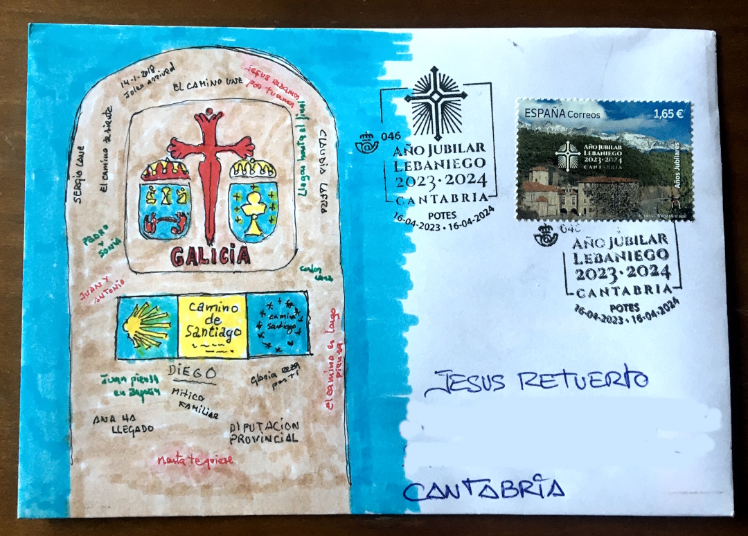 Seguro que ha pasado por la Puerta del Perdón del Monasterio de Santo Toribio de Liébana, y las indulgencias le serán concedidas. Bravo por ese envío tan cuidado, precioso el dibujo y detallazo de sello y matasello del Año Jubilar Lebaniego. Este Club del Arte Postal es maravilloso!!