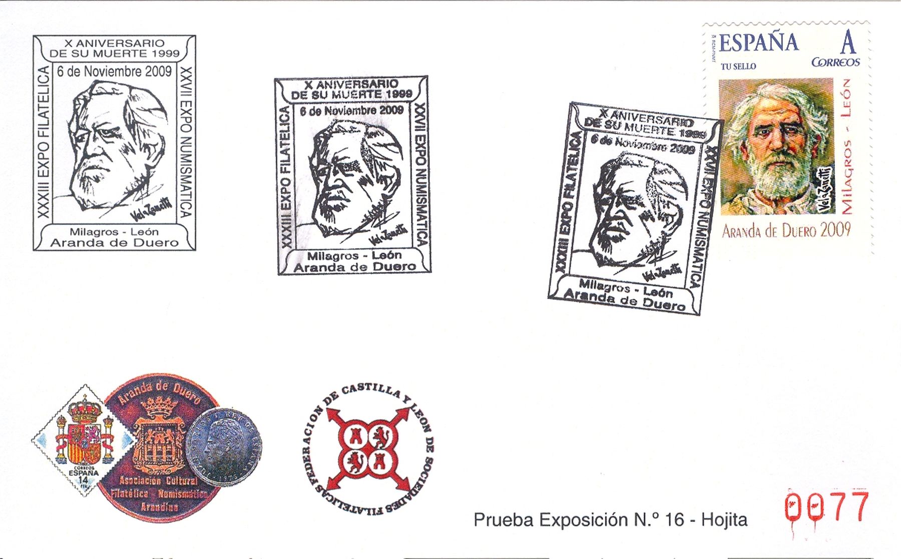 Aprovechando mi mensaje anterior, la Asociación Cultural Filatélica Numismática Arandina, con ocasión de la celebración de su XXXIII Exposición Filatélica y XXVII Exposición Numismática, dedicadas a Vela Zanetti (/Milagros-León) en el "X Aniversario de su muerte", allá por noviembre del año 2009, emitió un sello personalizado "TU SELLO".