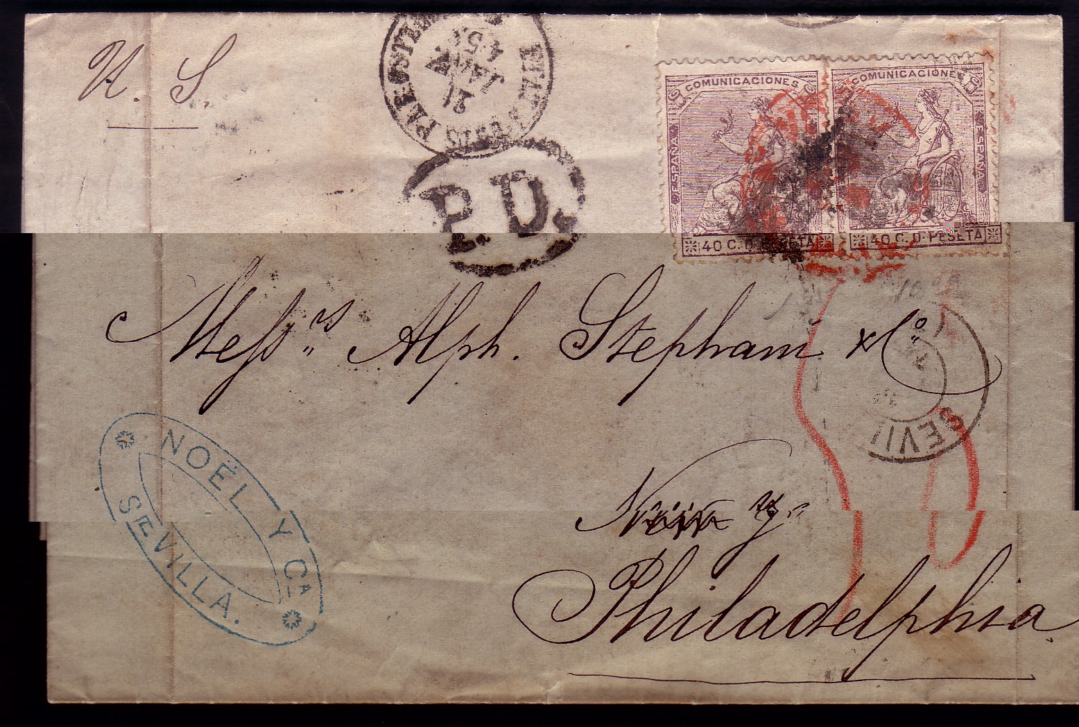 Subo imagen de la de mi cole pues creo que aporta un poco de luz sobre el fechador de Sevilla parcialmente estampado. Esta fechada el 14 de enero de 1874.