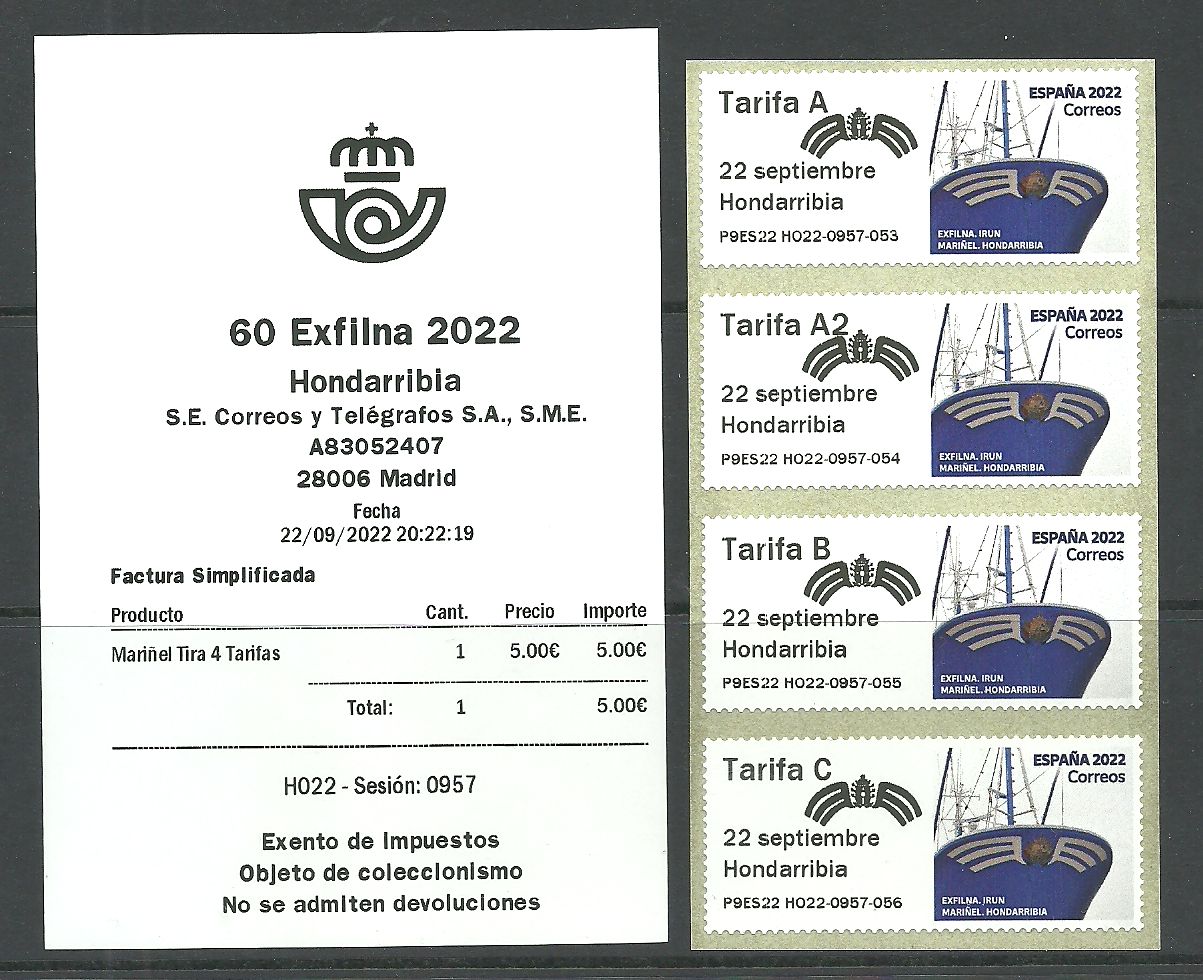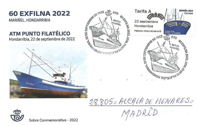 Parece ser que se montó un tenderete cerca del barco, desconozco si sólo en horario de mañana o mañana y tarde, en fin... y por supuesto, esos ATMs no se servirán bajo pedido al SF, ni comprándolos en Irún. Así mismo desconozco si en el propio stand de Correos de la EXFILNA hacen alusión a estos "extra" ATMs y cuando y donde se pueden conseguir. Recordar en este punto que esta gracia la empezó Correos en Madrid en 2018 ó 19, no recuerdo y la continuo con los ATMs del Xacobeo.