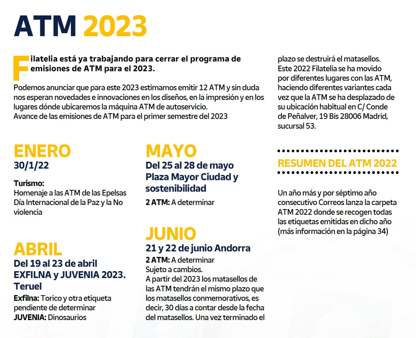 Buenos días, aquí les envío el Avance de las ATM's del primer semestre del 2023 según figura en la revista SELLOS Y MUCHO MÁS número 67 de Diciembre 2022.