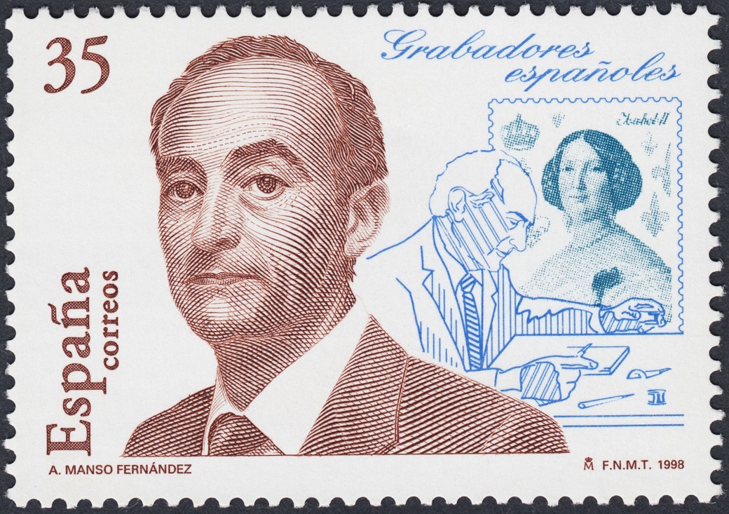 Del grabado del talentoso Manso se encarga Juan Carlos Heras Vicario, mientras que Alfredo de Oro Sanz talla el retrato del mítico Sánchez Toda. Dos sellos impresos mediante calcografía y offset, con tallas inspiradas y muy cuajadas de Vicario y Sanz.