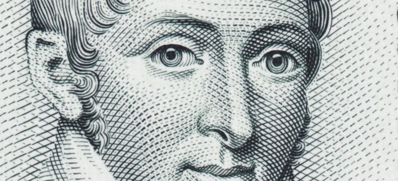 Tanto una como otra imagen, los retratos de Madou y el último de 1848, han sido muchas veces grabadas, no sólo en billetes, sino también en sellos, algunos de finales del siglo XIX a cargo de grabadores de prestigio, entre ellos el austríaco Ferdinand Schirnbock (1859-1930). Suyo es el retrato del sello argenetino de 1890 (*) con el que cerramos esta entrada complementaria.