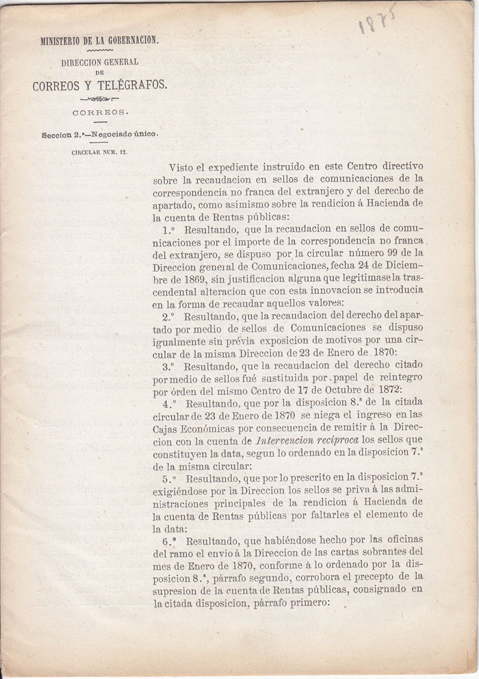 Tiene 6 hojas ( ó 12 páginas) y al final lleva la rúbrica manuscrita del Director General interino, Bernado Lozano.