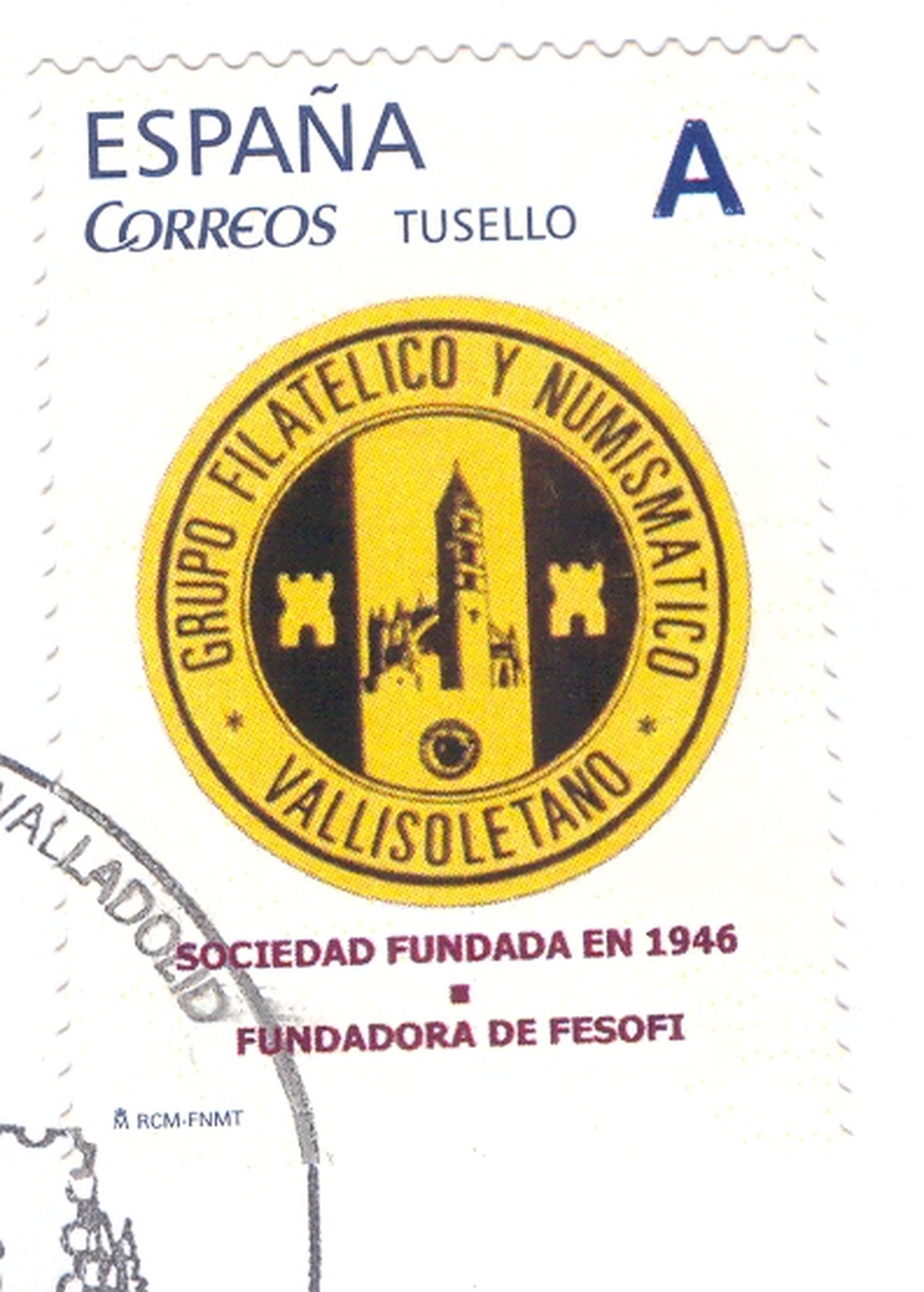 Reproduzco en este mensaje el sello personalizado (TU SELLO) emitido en Valladolid por el Grupo Filatélico y Numismático de Valladolid, que está celebrando este año su 70 cumpleaños.
