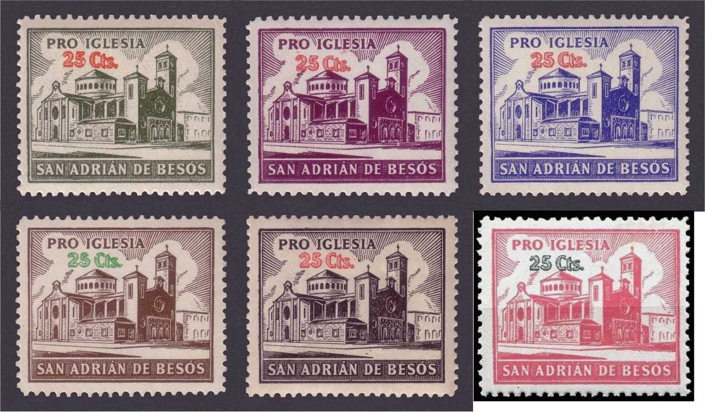 De todas manera SAN ADRIAN , ya tenia otra serie anterior, que exaltaba su Iglesia, datada en 1955, con motivo del 20 aniversario y de las Fiestas de San Joan, que ya salieron en su dia en hojitas de diferentes colores, con 8 viñetas cada una.