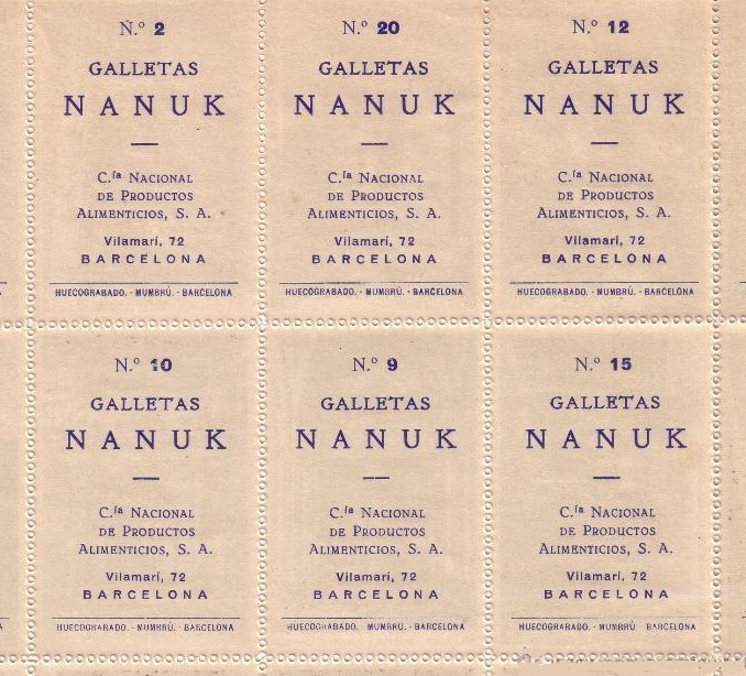 Galletas NANUK. Barcelona, C/ vilamarí 72. ....e impresor tambien de Barcelona, huecograbado MUNBRÚ
