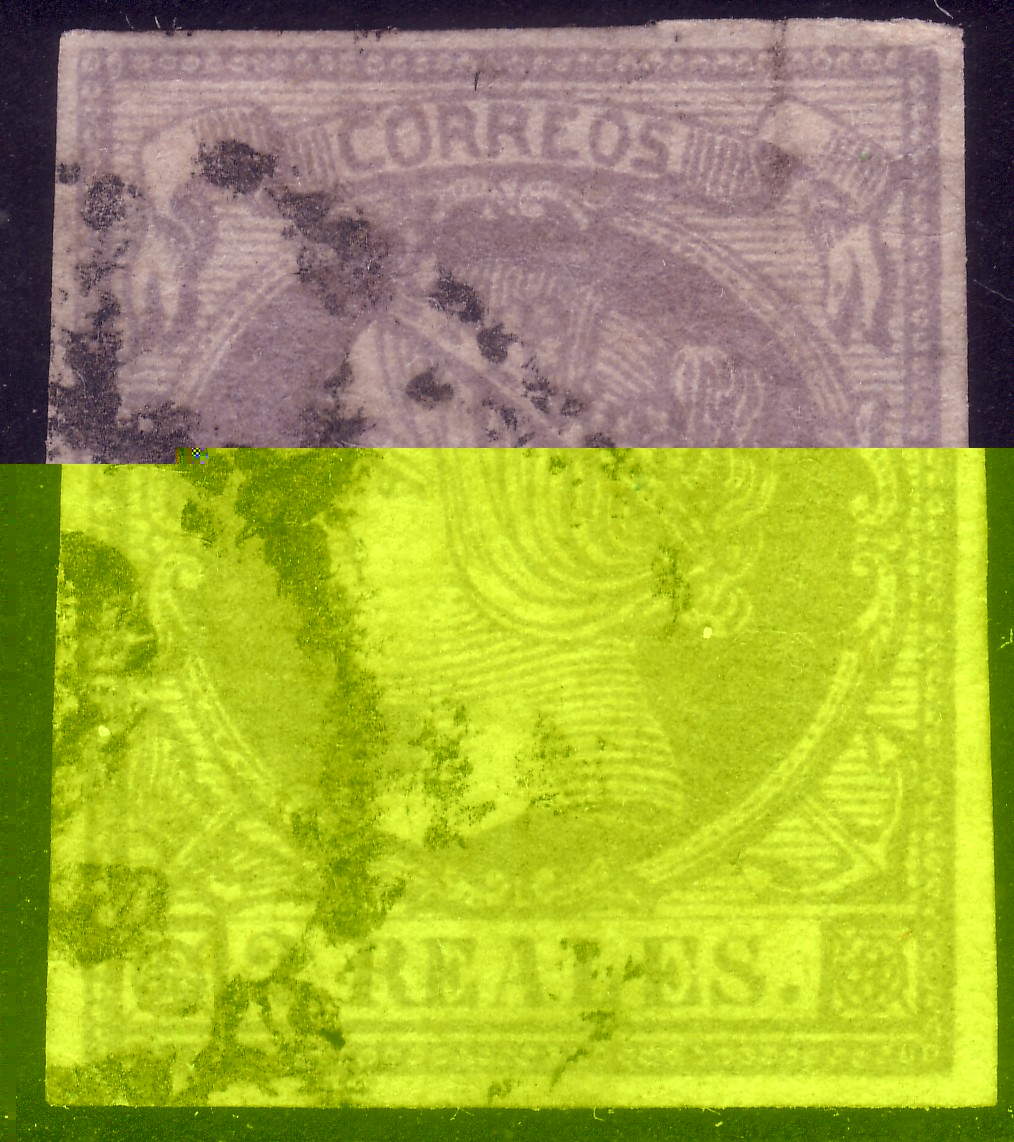 jaumebp escribió:Siguiendo la discusion de los falsos postales del 2 reales de 1860, tengo dudas sobre el siguiente sello que os muestro. El grosor de muchas de las lineas, por ejemplo en lso adornos inferiores me llevo a pensar que podria ser un falso postal (comparado con la tipica finura de detalles de los sellos autenticos). Pero, una vez examinados los detalles, tampoco consigo cuadrarlo con ninguno de los tipos de falsos postales. Que os parece? Autentico muy empastado? :? :?