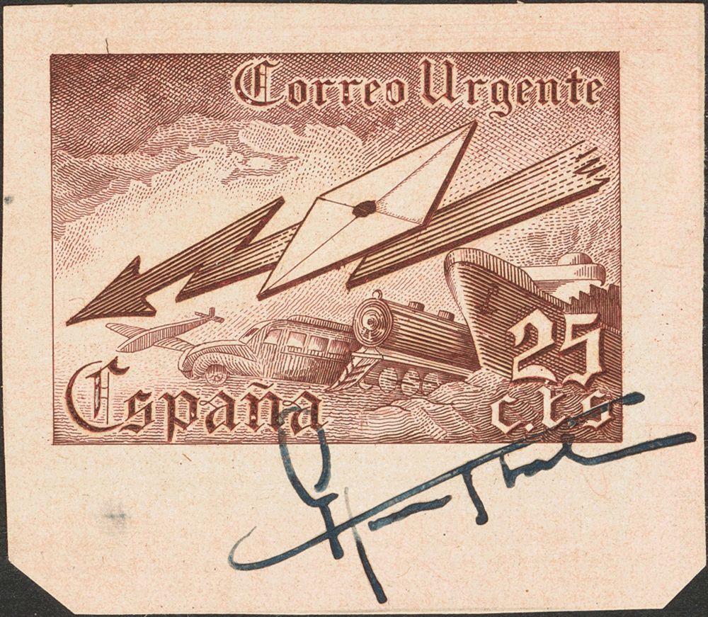 Al menos en lo que hace referencia a España, y muy especialmente además en el período, grosso modo, 1915-1945, en ese limbo filatélico del que hablábamos viven algunos sellos truncados realmente espectaculares. Y José Luis Sánchez Toda tiene allí, a la vista de las piezas que con tanta frecuencia se subastan a precios de oro, unos cuantos hijos tan fracasados en términos filatélicos, como triunfantes en su condición artística.